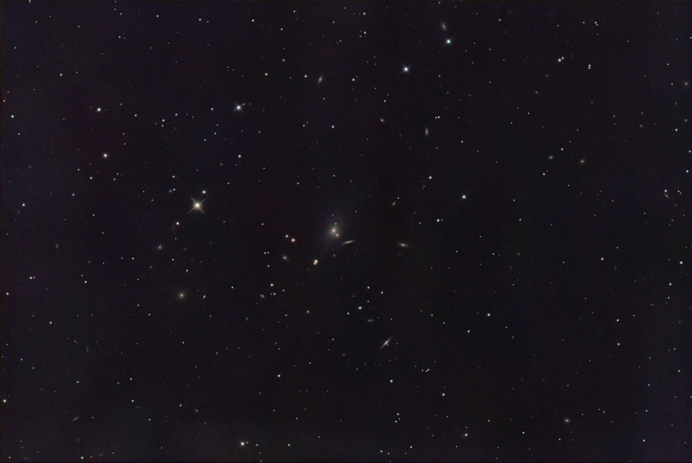 NGC 2832 is an elliptical galaxy in the constellation Lynx. The galaxy lies about 290 million light-years away from Earth, which means, given its apparent dimensions, that NGC 2832 is approximately 250,000 light years across.